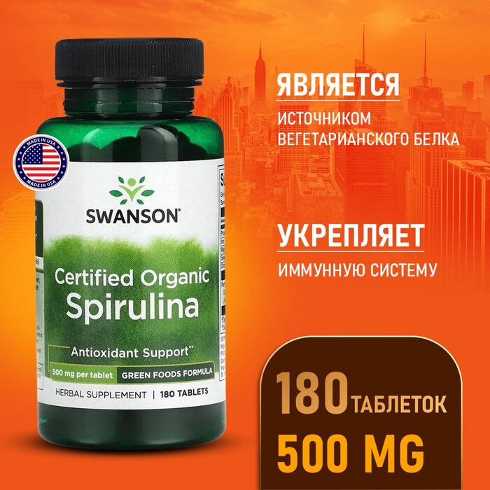 Упаковка из 180 таблеток обеспечивает удобство использования и длительный курс приема. Swanson Спирулина 500 мг — это эффективное и натуральное средство для поддержки здоровья, энергии и общего благополучия.