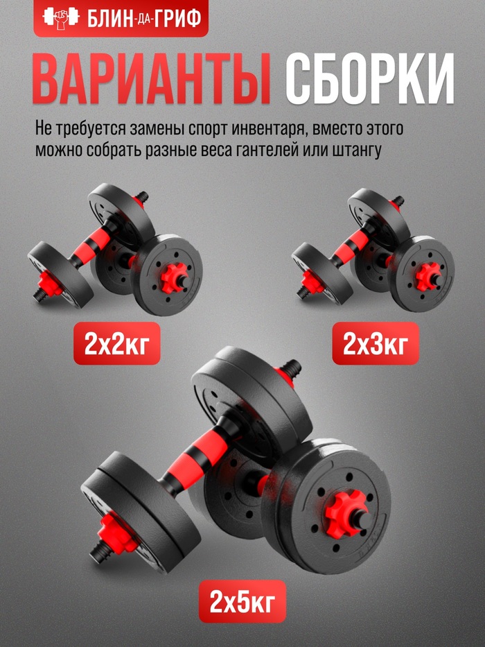 БлинДаГриф Гантели разборные 5 кг 2 шт, с грифом, регулируемые, общий вес 10 кг