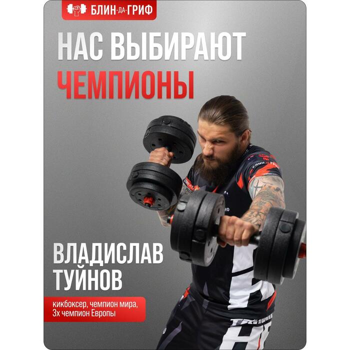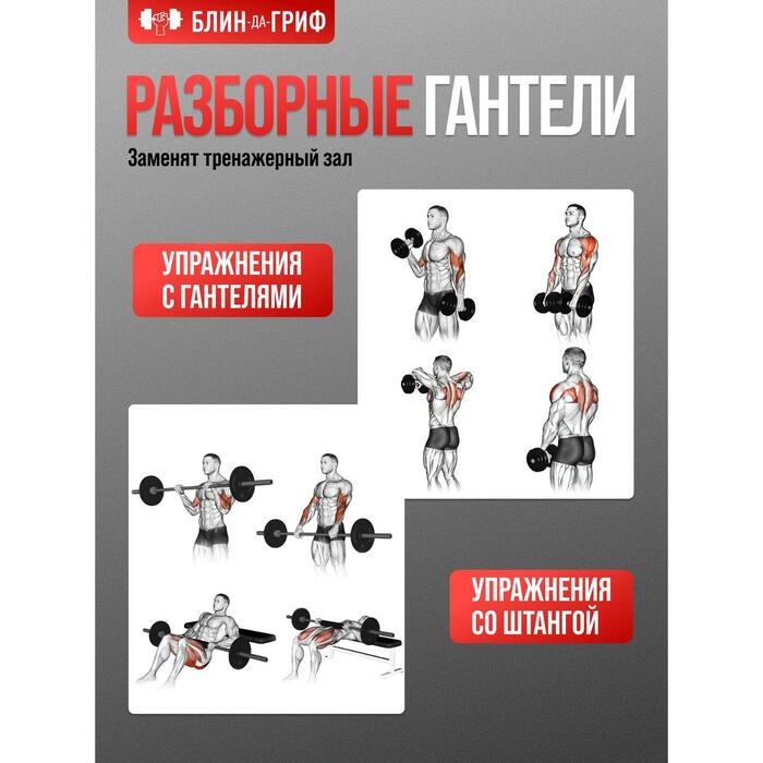 БлинДаГриф Штанга-трансформер разборная 30 кг, 2 гантели разборных по 15 кг