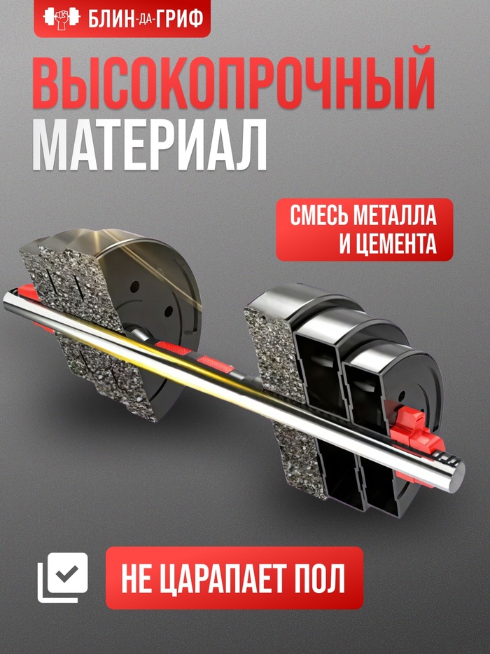 Спорт инвентарь штанга разборная создана специально для силовых тренировок и спортивной атлетики. Диски покрыты ударопрочным гипоаллергенным пластиком, внутри которого цементный наполнитель. Спортивный снаряд такого плана не гремит, не царапает пол, занимает мало места и трансформируется в гантели. Штанга-трансформер с лёгкостью разбирается в 2 гантели. Лучшее, что можно делать для себя- это уделять время спорту, своему телу, и здоровью. Домашние тренировки становятся все популярнее, особенно с использованием гантелей. Для ежедневных тренировок предлагаем вам домашний тренировочный инвентарь - трансформер. Большой спортивный набор гантелей заменит вам полноценную тренировку в зале. В спортивный инвентарь входят 19 предметов. Гриф для штанги лёгкий и в то же время прочный - он состоит из стальной трубы 2мм длиной 40см, покрытой неопреновой оболочкой, что обеспечивает мягкость и прочность фиксации. В зависимости от набора, блины для гантелей позволяют собрать гантели разборные 15 кг; гантели разборные 40 кг; гантели 1 кг; гантели 2 кг; гантели 3 кг; гантели 4 кг; гантели 5 кг; гантели 10 кг. Аксессуары и инвентарь будут хорошим и полезным подарком на любой праздник. Силовая тренировка будет доставлять вам удовольствие. Гантели для фитнеса помогают укрепить тело; увеличить мускульную массу; привести мышцы в тонус и держать в форме. Гантели разборные 6 кг представляют собой идеальную альтернативу тренажёрам, которые занимают много места и не всегда доступны в домашних условиях. Снаряд обеспечит необходимую тренировочную нагрузку и приведёт к результатам, которые вы не можете достичь без их помощи. Гантели трансформер и штангу приятно и комфортно держать в руке, выполняя, например жим лежа. Гантели женские и мужские можно собрать любого веса, как для начинающих любителей, так и для опытных спортсменов. С таким фитнес- инвентарем можно развивать все группы мышц. Наши гантели идеально подходят для домашних тренировок и уличных тренировок. Фитнес; тяжёлая атлетика в домашних условиях Вам обеспечен. Для фитнеса инвентарь можно использовать для укрепления всех групп мышц и выполнять упражнения на различные части тела: спину; плечи; грудь; трицепсы; бицепсы; ноги и т. д. Вы можете приобрести гантели для спорта разных весов себе или в подарок!
