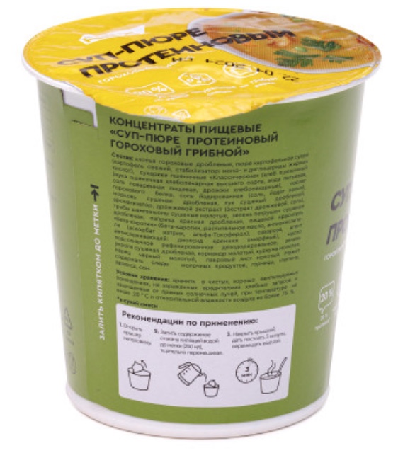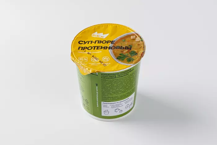 Proteinrex Суп–пюре протеиновый, гороховый грибной — это удобный и питательный протеиновый суп-пюре, предназначенный для быстрого и полноценного перекуса. Этот продукт сочетает в себе высокое содержание белка с вкусным и насыщенным вкусом, обеспечивая не только приятное ощущение сытости, но и поддержку ваших фитнес-целей.