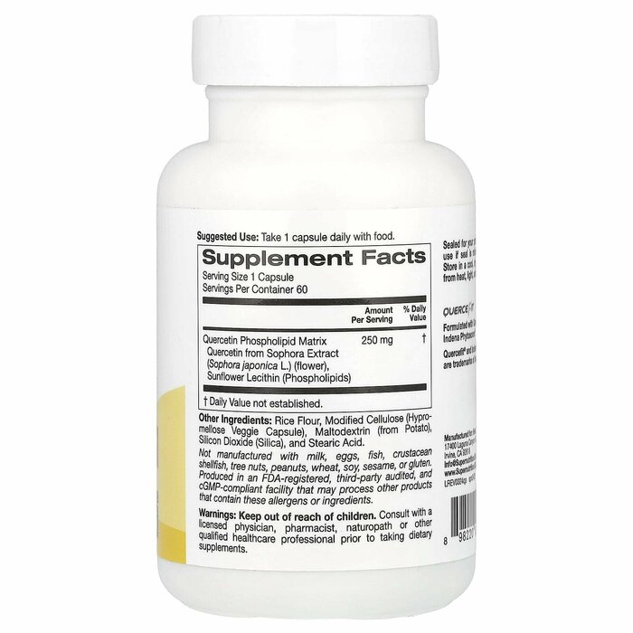 Quercetin Phytosome™ от Super Nutrition® содержит запатентованные фитосомы кверцетина (Quercetin Phytosome™), Quercefit®, которые, как было доказано, поддерживают здоровье иммунной системы.
