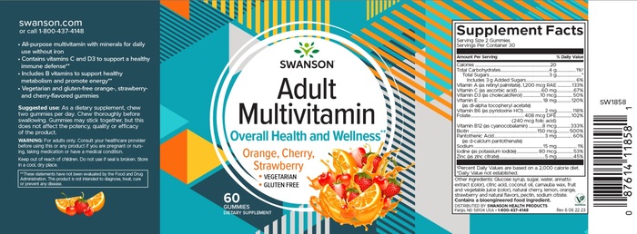 Swanson Мультивитамины для взрослых Персик, Апельсин, Клубника, 60 жевательных конфет