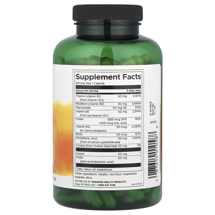 Swanson Balance B-50 Complex особенно полезен для людей, подверженных повышенным физическим и умственным нагрузкам, а также для тех, кто испытывает дефицит витаминов из-за несбалансированного питания или стресса. Этот комплекс также поддерживает здоровье сердечно-сосудистой системы, способствуя снижению уровня гомоцистеина в крови. Удобная форма выпуска позволяет принимать всего одну капсулу в день для обеспечения организма необходимыми витаминами группы B на протяжении всего дня.