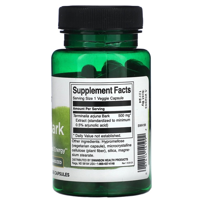 Swanson Кора Арджуны, стандартизированная (500 мг), 60 капсул