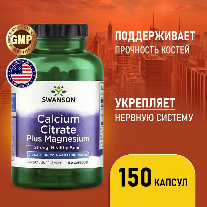 Цитрат кальция и магний Calcium Citrate Plus Magnesium 150 капсул – это добавка, сочетающая два важнейших минерала: кальций и магний, в удобной форме цитрата для лучшего усвоения организмом. Кальций необходим для здоровья костей и зубов, а также участвует в процессах свертывания крови и передаче нервных импульсов. Магний, в свою очередь, помогает поддерживать нормальную работу мышц, нервной системы и сердечно-сосудистой системы, а также способствует нормализации обмена веществ и улучшению качества сна.