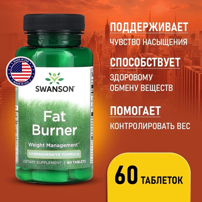 SWANSON Жиросжигатель, 60 табл — это уникальный препарат для сжигания жира, разработанный с использованием передовых технологий и основанный на обширных исследованиях в области физиологии и питания.