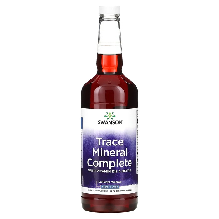 Swanson Trace Mineral Complete с витамином B12 и биотином - это высоко биодоступная минеральная добавка с великолепным вкусом. Минералы играют ключевую роль во многих биохимических процессах в организме. Сегодня потребность в микроэлементах растет. Trace Mineral Complete специально обработан из девственных минеральных отложений, взвешен в хорошо усваиваемой вишневой основе на очищенной воде, чтобы предложить вам по-настоящему ароматную, богатую минералами пищевая добавка. Обязательно хорошо встряхните перед употреблением, поскольку все эти полезные минералы имеют тенденцию собираться на дне бутылки.