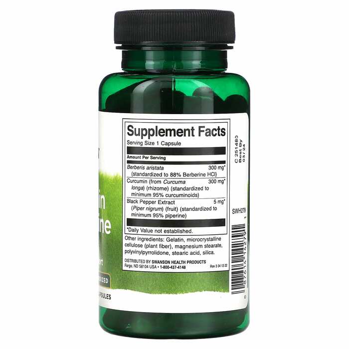 Ищете простую, но эффективную добавку для поддержки нормальной функции инсулина и метаболизма глюкозы? Комбинация куркумина и берберина от Swanson обеспечивает именно это. Оба эти растительных ингредиента имеют богатую историю использования аюрведическими врачами для поддержки обмена веществ. Современные исследования подтвердили их независимую пользу, и травники часто рекомендуют принимать их вместе для достижения оптимальных результатов. Наши капсулы усилены экстрактом черного перца для лучшего усвоения.