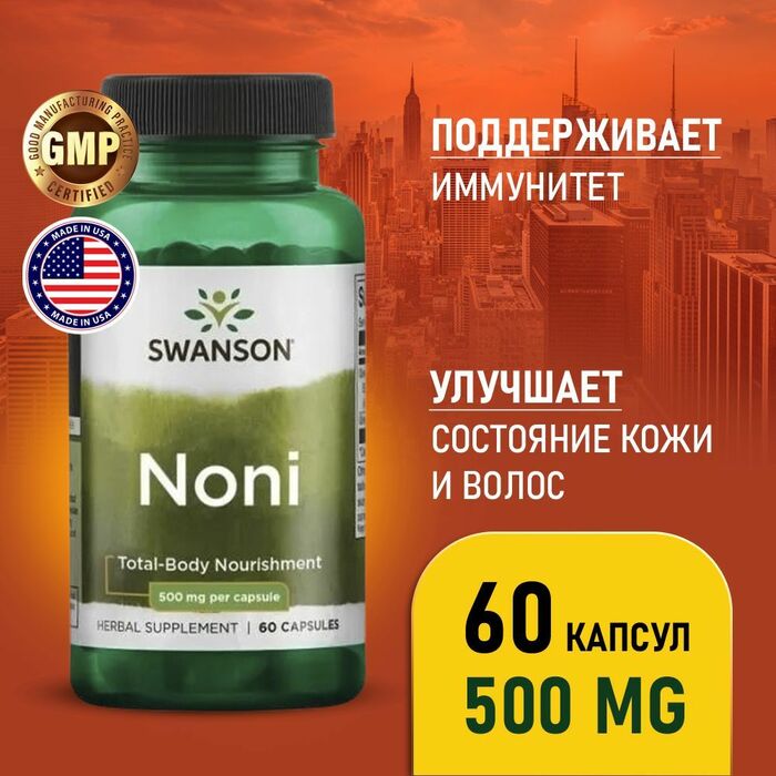 Swanson Нони Ultra (500 мг) — это высококачественная добавка, содержащая экстракт нони в дозировке 500 мг на капсулу. Каждая упаковка содержит 60 капсул, что обеспечивает длительный курс применения.