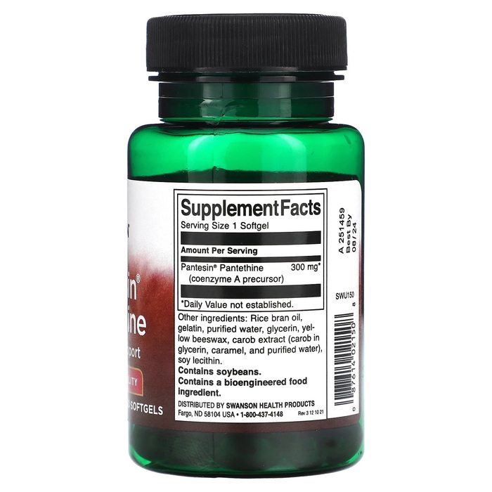 Pantesin Pantethine от Swanson Health Product поддерживает здоровый уровень липидов, уже находящийся в пределах нормы, благодаря безопасному и эффективному питанию! Этот метаболит витамина B5 с высокой биодоступностью способствует здоровой работе сердечно-сосудистой системы.