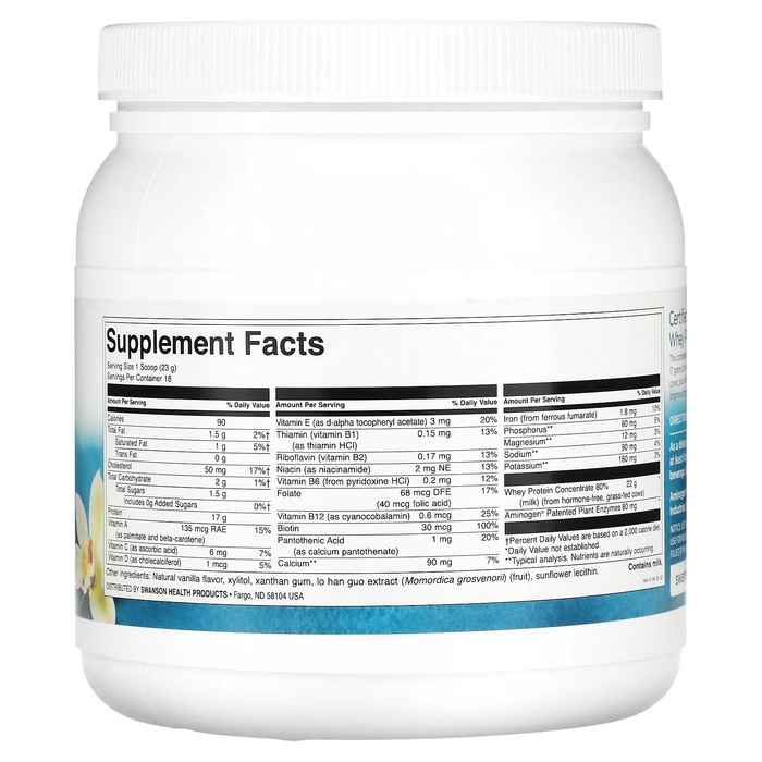 Swanson Сывороточный протеин Grass Fed Ваниль, 420 г