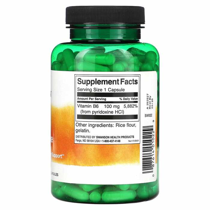 Витамин B6 Swanson имеет множество преимуществ для организма. Во-первых, он поддерживает нормальное расщепление углеводов, белков и жиров, играя важную роль в энергетическом обмене. Он также взаимодействует с фолиевой кислотой и витамином B12, поддерживая здоровье сердечно-сосудистой системы. Каждая капсула содержит 100 мг витамина B6.