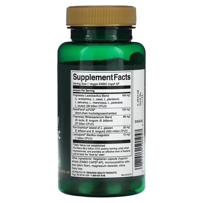 Swanson Сверхэффективный пробиотик (66,5 млрд КОЕ), 60 капсул