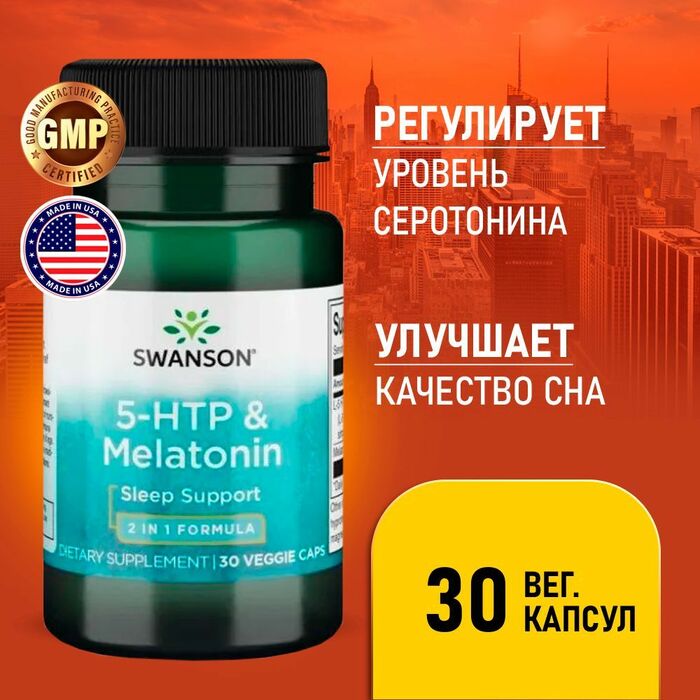 SWANSON Ultra 5-Htp & Melatonin содержит уникальную комбинацию 5-гидрокситриптофана и мелатонина, обеспечивающую эффективное решение проблем с бессонницей и стрессом. При регулярном применении можно достичь более спокойного и гармоничного образа жизни, борясь с повседневным стрессом и усталостью.
