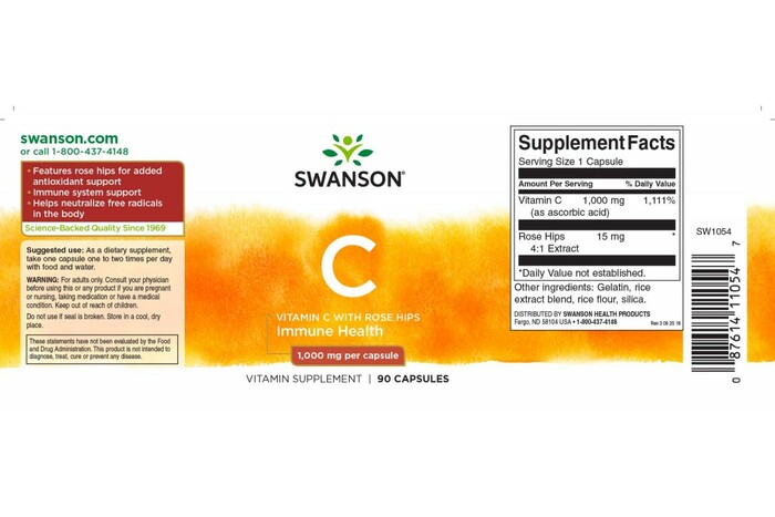Swanson Витамин С + Шиповник (1000 мг), 90 капсул