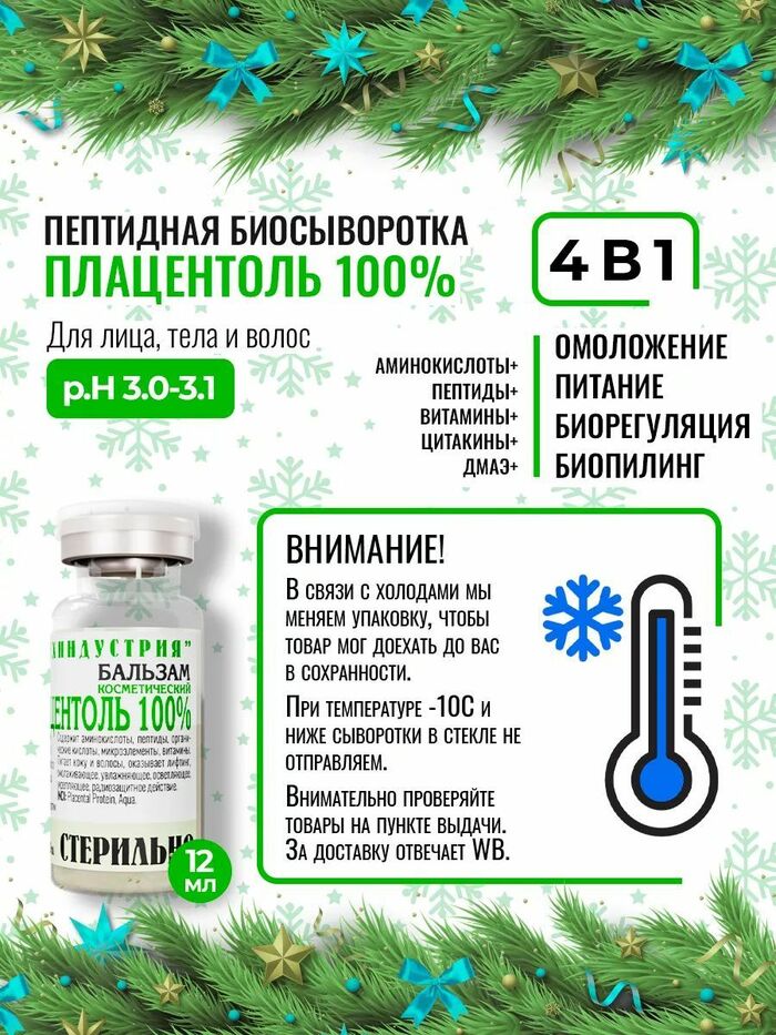 Сыворотка для лица, тела и волос 100% плацентоль — это концентрированный уход в формате 12 мл, который помогает поддерживать кожу, волосы и общее ощущение ухоженности. Средство создано для комплексного применения и подходит тем, кто хочет заботиться о красоте и качестве ухода в одном продукте.
