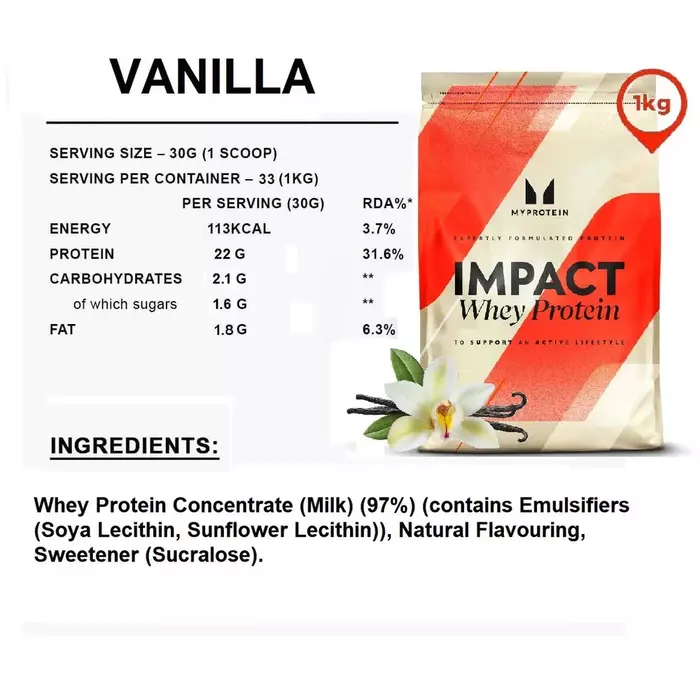 Myprotein Сывороточный протеин Impact Whey Ваниль, 1000 г — это высококачественный источник белка, который способствует росту и восстановлению мышечной массы, поддерживая ваши фитнес-цели и обеспечивая организм необходимыми аминокислотами.