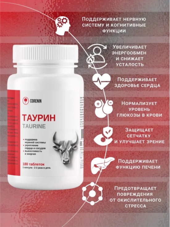 Таурин от бренда Corenin — это высококачественная добавка, содержащая 180 таблеток, предназначенных для поддержки организма. Этот продукт идеально подходит для тех, кто стремится улучшить свое общее состояние и повысить уровень энергии.