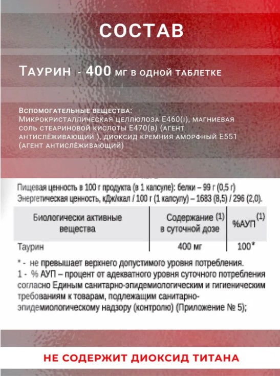 • Поддержка сердечно-сосудистой системы: Таурин способствует нормализации работы сердца и улучшению кровообращения.