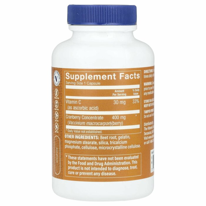 Капсулы Cranberry Plus от Vitamin Shoppe® специально созданы для поддержания здоровья мочевыводящих путей и содержат 400 мг концентрата клюквенного сока и 30 мг витамина C.