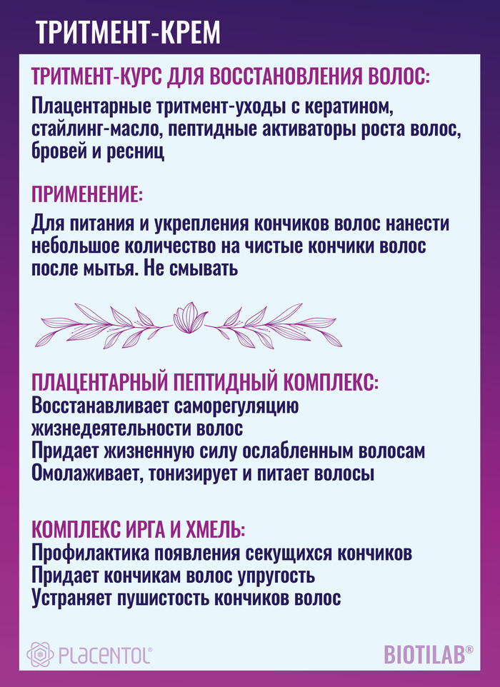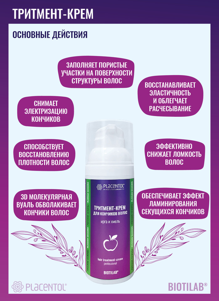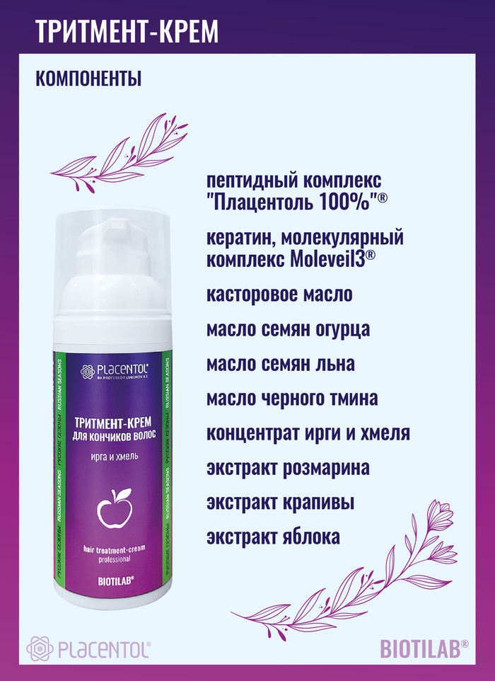 Плацентоль Тритмент-крем для кончиков волос Ирга и Хмель, 50 мл