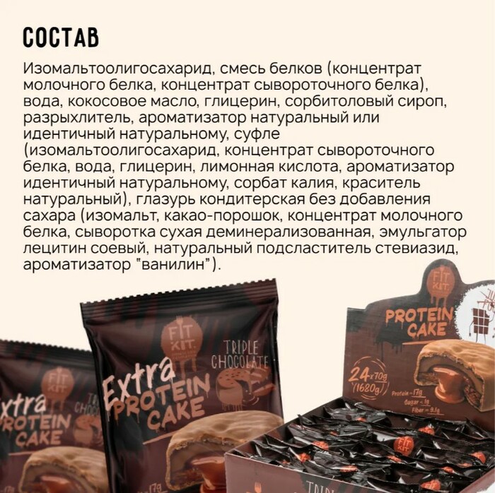 Fit Kit Печенье Protein cake Extra Тройной шоколад, 70 г