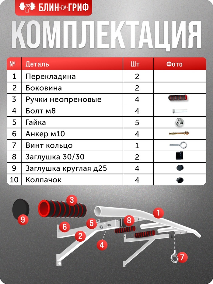 • Брендовая надежность: Турник произведен под маркой Блин-Да-Гриф, что гарантирует высокое качество и долговечность.