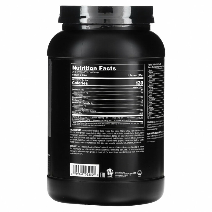 ANIMAL WHEY® Корм для мышц, чистый и простой. Белок - это сырье, способное нарастить ту массу, которую вы так отчаянно ищете. Для самых преданных лифтеров тяжелых тренировок и чистого питания недостаточно. Им нужно немного больше. И это преимущество проявляется в Animal Whey®. Animal Whey® - это один из самых простых и важных пищевых продуктов для бодибилдинга. Это легко усваиваемый и быстро перерабатываемый сывороточный протеин, который обеспечивает строительные блоки, необходимые для роста, силы и улучшения. Это пища для мышц в чистом виде.
