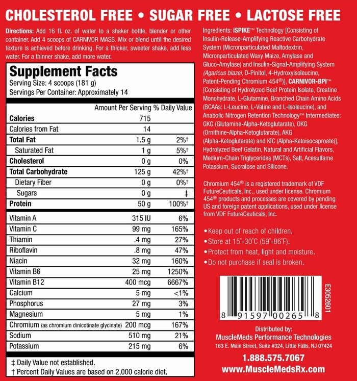 MuscleMeds Гейнер Carnivor Mass Ваниль-Карамель, 2590 г