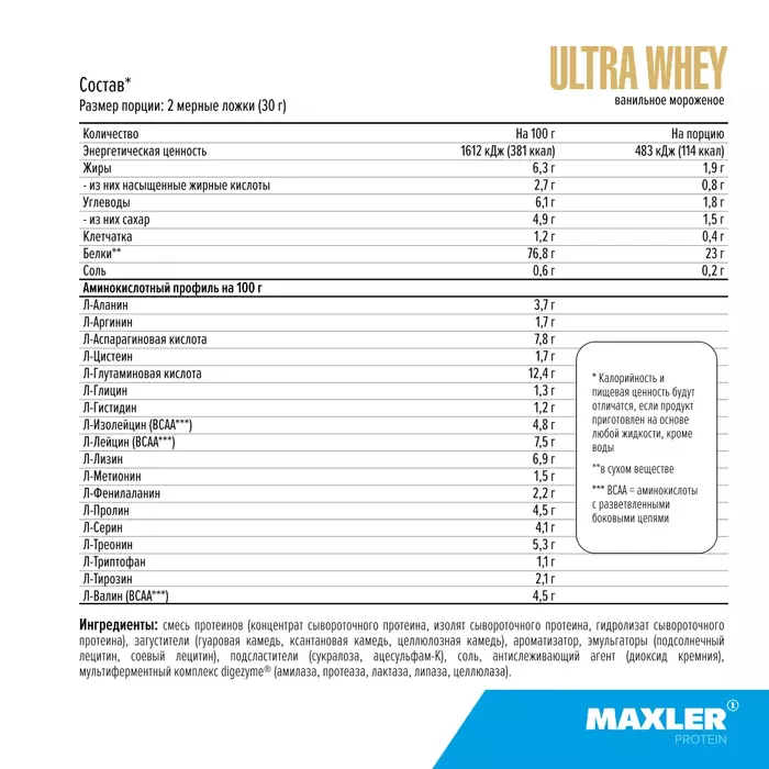 Maxler Протеин Ultra Whey Ванильное Мороженое, 900 г