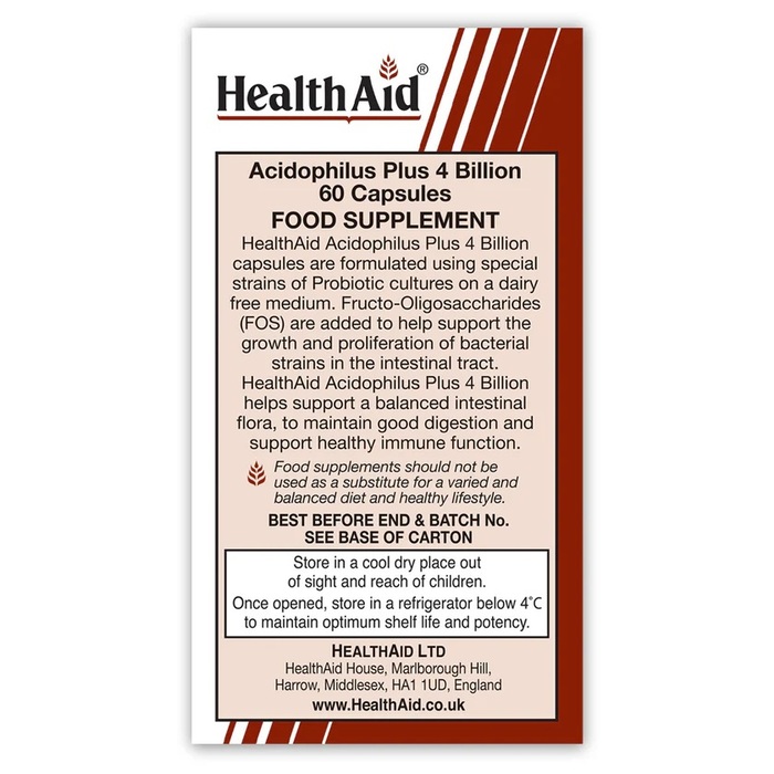 Веганские капсулы Health Aid Acidophilus — это отличный выбор для поддержания здоровья пищеварительной системы. Каждая упаковка содержит 30 капсул, которые обеспечивают организм пробиотиками, способствующими нормализации микрофлоры.