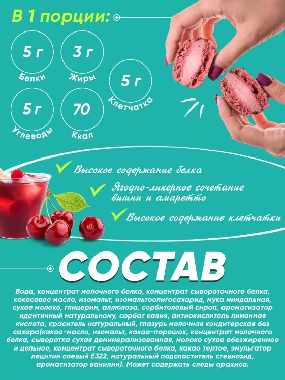 Fit Kit Протеиновый Макарон Chocoron в шоколаде Вишня-Амаретто, 30 г