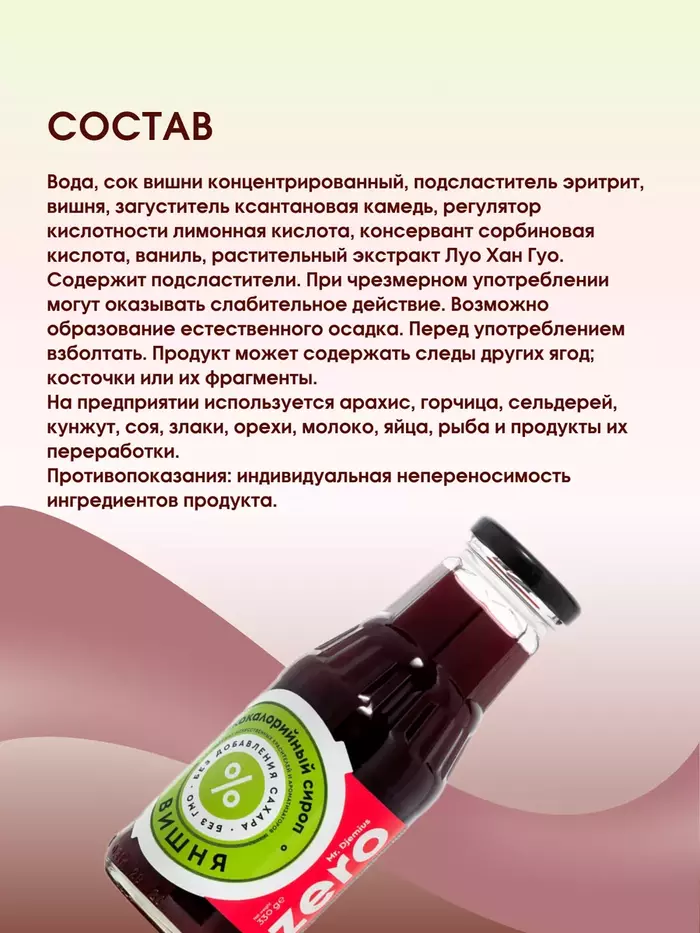Mr. Djemius Сироп низкокалорийный ZERO Вишня, 330 мл