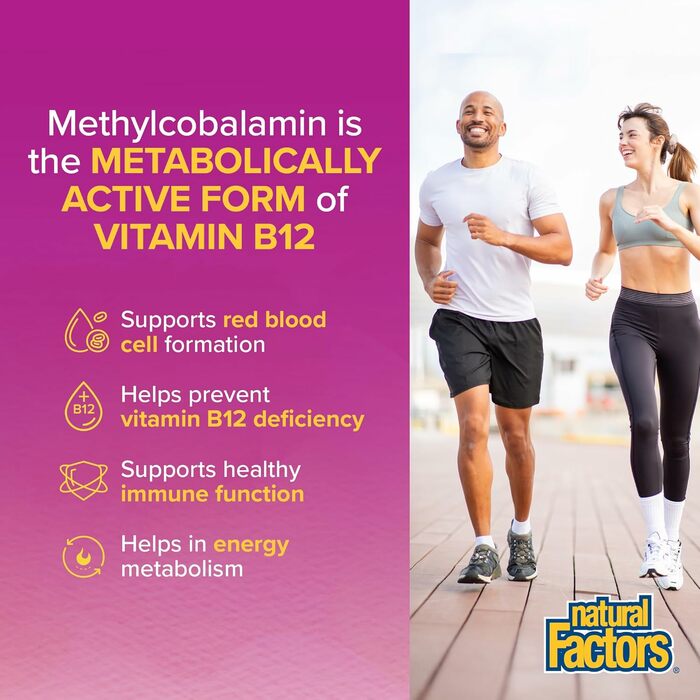 Метилкобаламин (витамин B12) активен сразу после всасывания, в то время как другие формы (например, цианокобаламин) организму нужно преобразовать в метилкобаламин в два этапа. Метилкобаламин демонстрирует исключительную активность в тех областях, где другие формы просто не активны. Дополнительный прием витамина B12 рекомендуется для вегетарианцев и людей с дефицитом B12. Он способствует формированию эритроцитов, предотвращает дефицит витамина B12 и помогает поддерживать хорошее самочувствие.