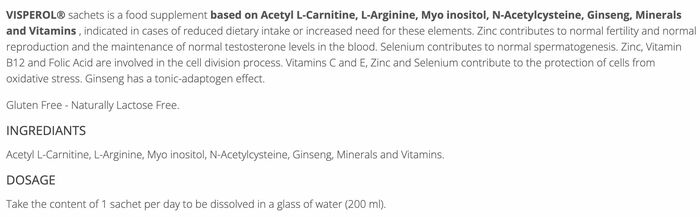 Пакетики Висперол имеют удобную форму и легко растворяются в воде, что делает их удобными для использования в любом месте. Продукт подходит для людей, ведущих активный образ жизни, и может быть использован в качестве дополнения к основному рациону.