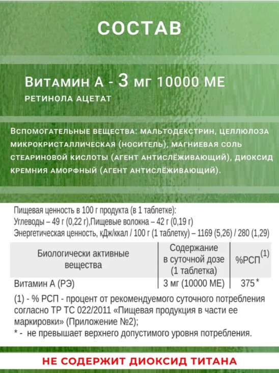 • Поддержка зрения: Витамин А играет ключевую роль в поддержании здоровья глаз и улучшении ночного зрения.
