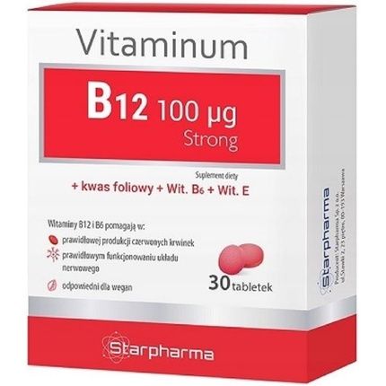 Витамин B12 100 мкг Starpharma с фолиевой кислотой, витамином B6 и витамином E — это высококачественный комплекс, который поддерживает здоровье и жизненную активность организма. В каждой упаковке содержится 30 капсул, которые обеспечивают необходимую дозу витаминов для полноценного функционирования.