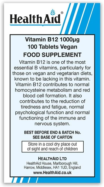 Витамин B12 длительного высвобождения Health Aid 1000мкг — это высококачественная добавка, предназначенная для поддержания нормального уровня витамина B12 в организме. В каждой упаковке содержится 100 таблеток, которые обеспечивают длительное высвобождение активного вещества.