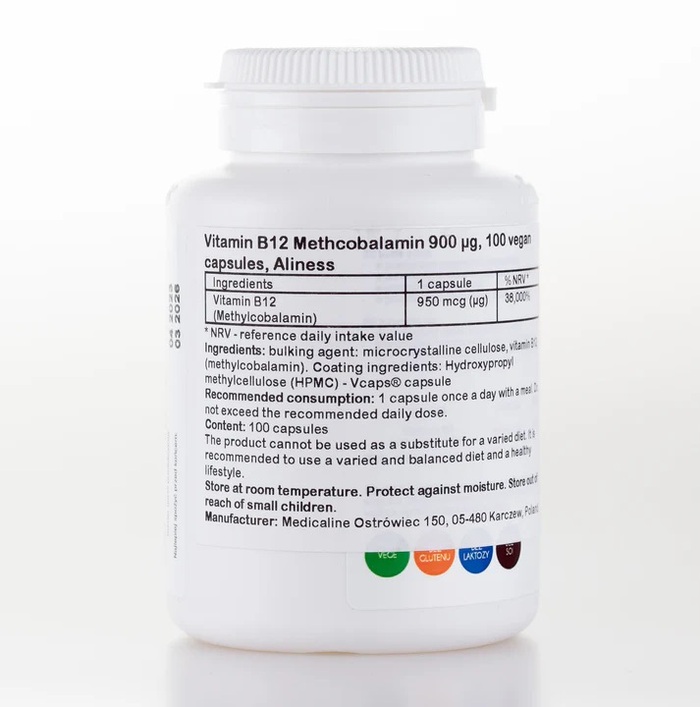 Капсулы легко проглатываются и не содержат искусственных добавок. Витамин B12 Метилкобаламин Aliness подходит для вегетарианцев и веганов, обеспечивая необходимый уровень витамина B12 без продуктов животного происхождения.