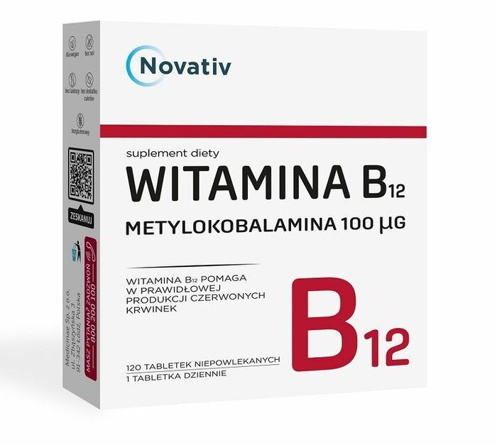 Витамин B12 Novativ Метилкобаламин 100 мкг 120 таблеток — это высококачественная добавка, предназначенная для поддержания нормального уровня витамина B12 в организме. Каждая таблетка содержит 100 мкг метилкобаламина, который легко усваивается и активно участвует в обмене веществ.