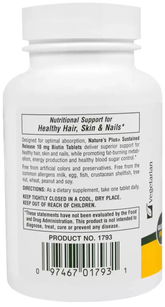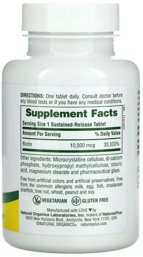 Nature's Plus Витамин Биотин Nature's Plus 10000 мкг, с пролонгированным высвобождением, 60 таблеток