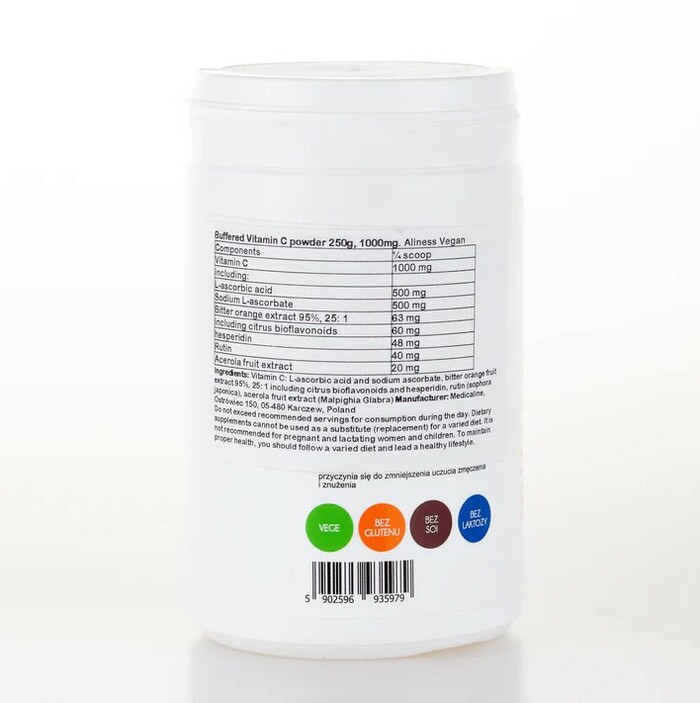 Витамин C 1000 Plus Aliness — это мощный комплекс для поддержки иммунной системы. В каждой упаковке содержится 250 г, которые обеспечивают организм необходимым витамином C, способствующим укреплению защитных функций.