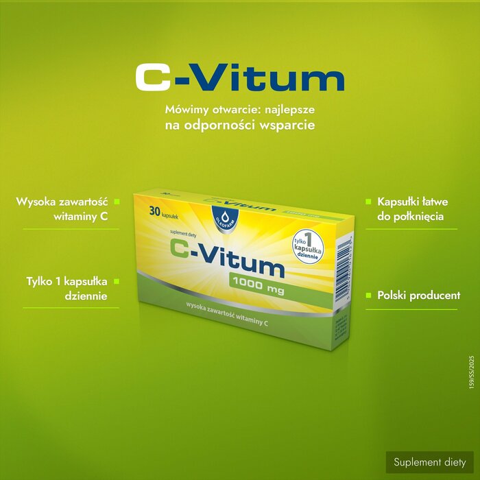 Витамин C C Vitum 1000 от бренда Oleofarm — это высококачественная добавка, содержащая 1000 мг витамина C в каждой капсуле. В упаковке вы найдете 30 капсул, которые помогут поддерживать уровень витамина C в организме.