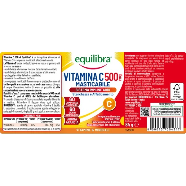 Витамин C Equilibra 500 мг 60 таблеток — это высококачественный источник витамина C, который поддерживает здоровье и активность организма. Каждая таблетка содержит 500 мг витамина C, что способствует укреплению иммунной системы и улучшению общего самочувствия.