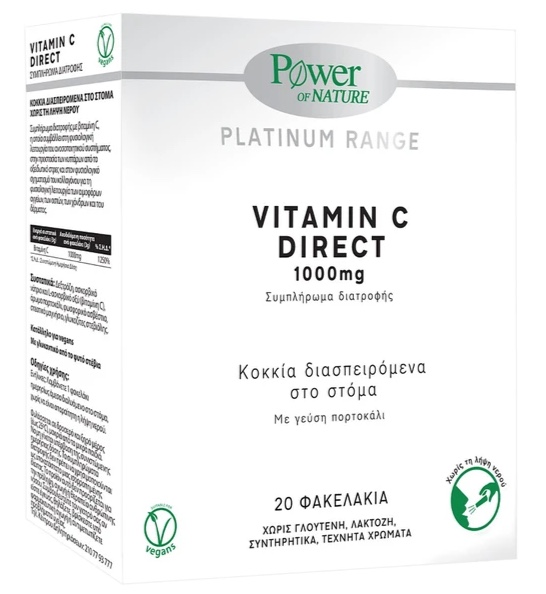 Витамин C Power of Nature Power Of Nature Platinum Range Direct 1000мг — это высококачественный продукт, который обеспечивает ваш организм необходимым витамином C в удобной форме саше. В каждой упаковке содержится 20 саше, что делает его идеальным для ежедневного использования.