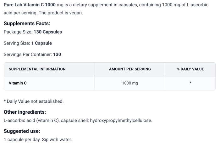 Pure Lab Витамин C Pure Lab 1000 мг 130 капсул
