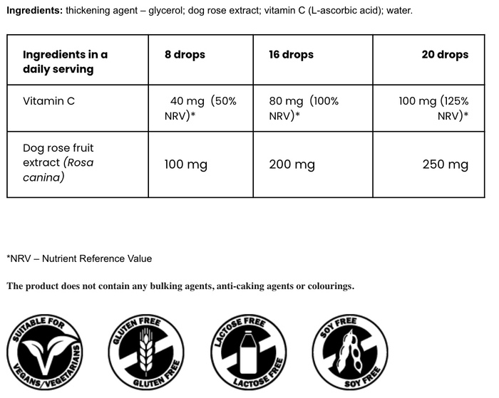 Капли с шиповником имеют приятный вкус и легко дозируются, что делает их удобными для ежедневного использования. Продукт подходит для людей всех возрастов и может быть полезен в периоды повышенных нагрузок и стресса.