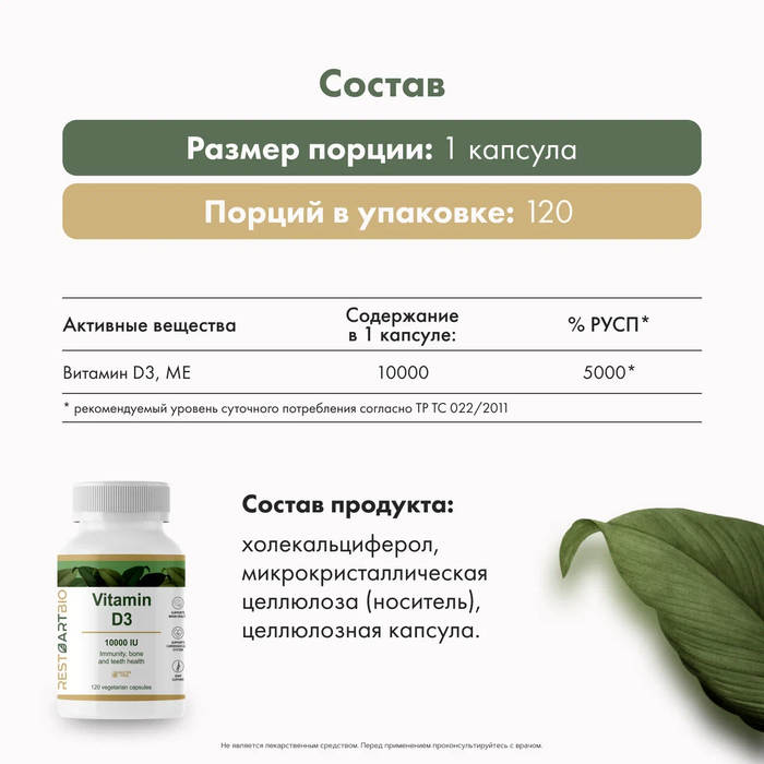 RestartBio Витамин D3 (10000 ME), 120 капсул