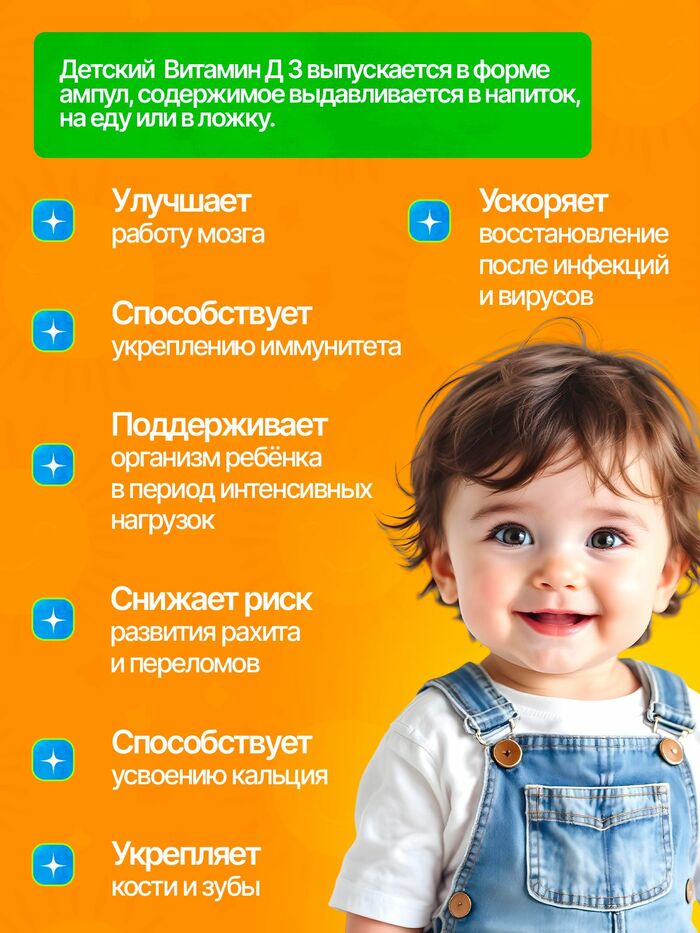 Витамин Д3 для детей от 1,5 лет — это важный элемент для поддержания здоровья вашего ребенка. В каждой упаковке содержится 60 ампул, что обеспечивает длительный курс приема и необходимую дозировку витамина Д3.